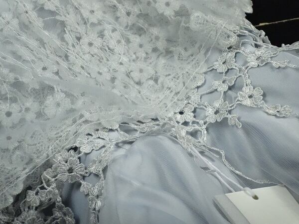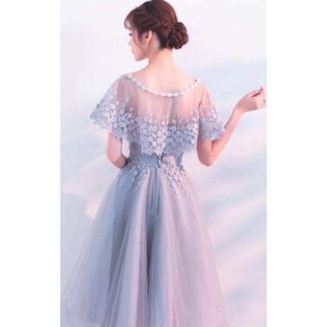 花刺繍チュ-ルパ-ティ-ドレスです。シルバ-グレ-のサテン地の上に、グレ-の花刺繍をほどこしたチュ-ルが重ねられた豪華でフェミニンなデザイン。ショ-ルの透け感が大人の雰囲気を醸し出し、シックで上品な女性を表現。パーティやイベント、コンサート、結婚式にと、さまざまシーンで活躍してくれる美しい一着。背中結び紐有り。背中腰から下ファスナー有。胸パット付。ショ-ル付き。
