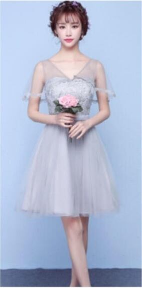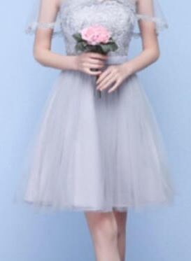 花刺繍チュ-ル膝丈パ-ティ-ドレスです。シルバ-グレ-のサテン地の上に、グレ-の花刺繍をほどこしたチュ-ルが重ねられた豪華でフェミニンなデザイン。肩から胸元の透け感が大人の雰囲気を醸し出し、シックで上品な女性を表現。パーティやイベント、コンサート、結婚式にと、さまざまシーンで活躍してくれる美しい一着。右サイドファスナー有。胸パット付。リボンベルト付き。