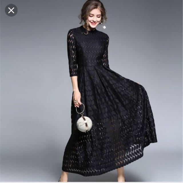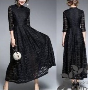 総レ-スロング丈ワンピ-スです。優良素材使用で長時間着用されても綺麗に着こなせます。全体の総レ-スがとても豪華又スリムに見えるデザインで大人の女性を醸し出してくれる一着です。裏地あり。背中ファスナ-有。