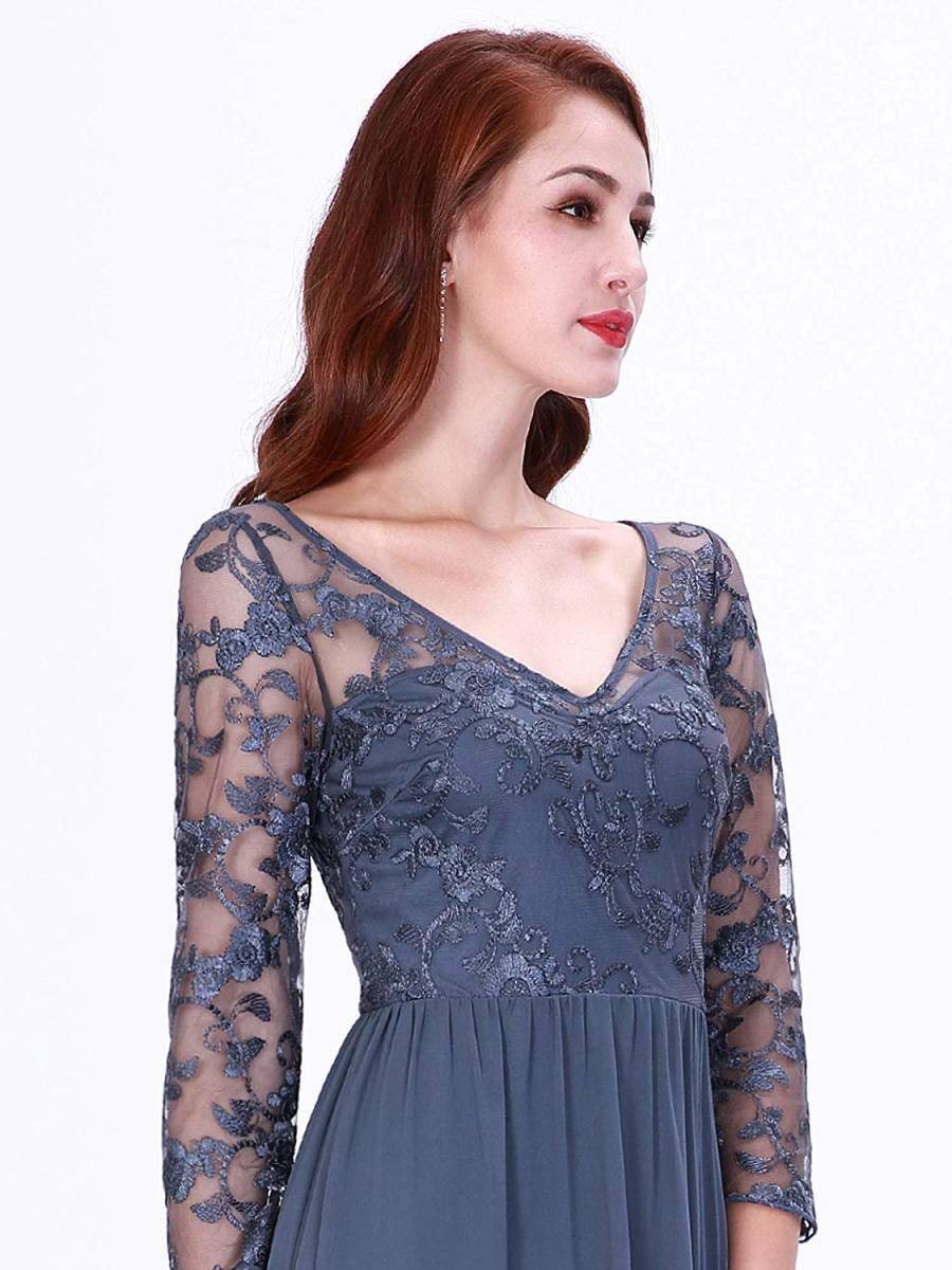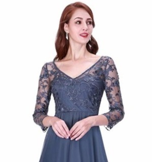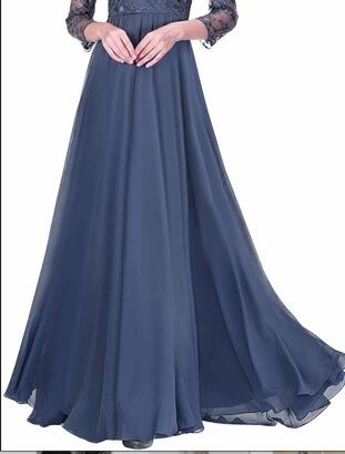大人の女性の雰囲気を醸し出してくれる見栄えのする豪華なロングドレスです。胸元から袖にかけての透け感が大人っぽさを漂わせスカ-ト部分はたっぷりと生地を使い大変ボリュ-ム感のある女性らしい素晴らしいドレスです。軽やかでしなやかな生地で裾が歩くたびにひらひらと揺れ、足元を美しく見せてくれます。裏地有。背中ファスナ-有。