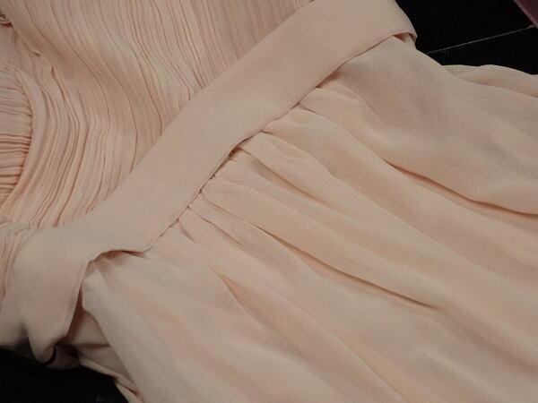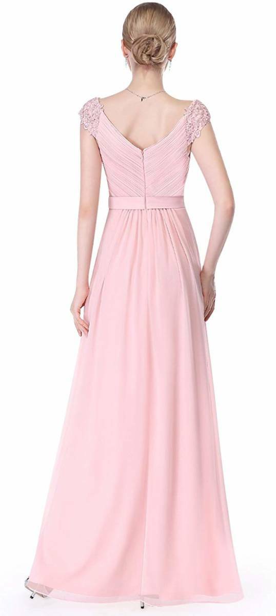 背中V字胸元レースとプリ-ツ仕様のカラ-ロングドレスです。ウエストからスカート裾までは、しなやかなシフォンが揺れるごとに着る人の足元を美しく見せてくれます。胸元は立体刺繍が施されとても豪華です。パーティやライブ、イベント、結婚式など、どんなシーンでも活躍してくれる一着です。裏地有。背中ファスナー有。胸パット付き。