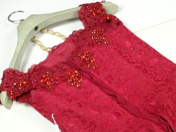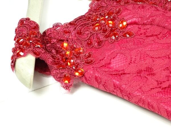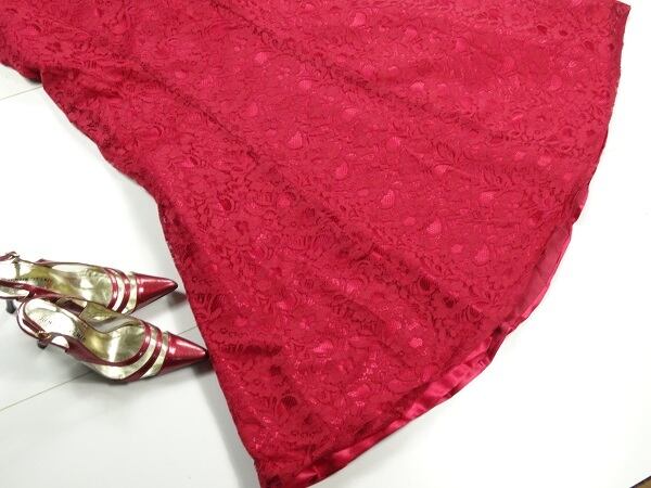 マーメイドイブニングロングドレスです。全体的に光沢サテン地の上に刺繍レ-スが重ねられとても高級感があり大人の女性の雰囲気を醸し出してくれるドレスです。パーティやライブ、イベント、結婚式など、どんなシーンでも活躍してくれる一着です。背中網掛け。胸パット付き。