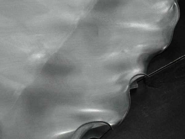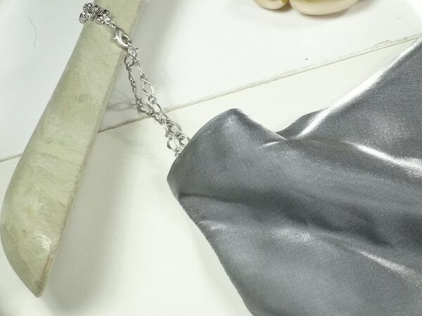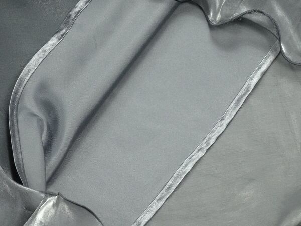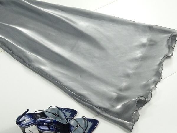 上質な素材感の女性度アップパ-ティ-ドレスです。光沢のあるシルバ-が高級感たっぷりの上品な一品です。注目度抜群です。裏地有。左サイドファスナ-有。