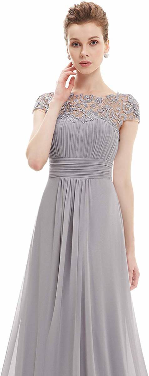 レースプリーツシフォンのロングドレス。胸元のデコルテラインからそでぐりにかけて立体レースと小さなライトストーンをあしらい、胸元は縦のプリーツ、ウエストには横のプリーツをとりエレガントな印象に。胸元のレース部分には裏にベージュのチュールを合わせているので、肌が透けて見えるように見えて、実際はしっかりとカバーされています。スカート部分はウエストから裾にかけてシフォン地をたっぷりと使い、ボリュームのあるフレアになっています。パーティやイベント、結婚式など、様々なシーンで、気品のある印象を与えてくれる一枚です。背中ファスナ-有。胸パット付。裏地有。