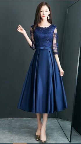 エレガントパ-ティ-ワンピ-スです。気品に満ちたとてもエレガントで上品なひとクラス上をいく一品です。トップス部分のレースの透け感もとても上品でエレガントです。裏地有。背中ファスナ-有。