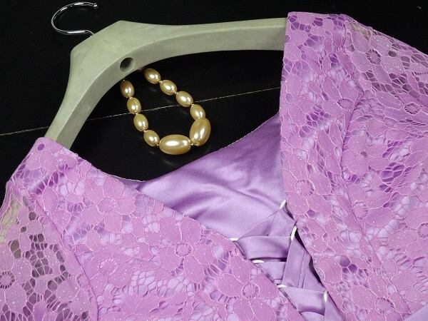 トップス部分立体花柄刺繍チュールパ-ティ-ドレスです。トップスにピンク糸の立体刺繍が施されたレースが重ねられとても豪華です。全体的にサテン地の上に無地のチュールを2重たっぷりと重ね豪華な雰囲気に。パーティやイベント、結婚式など、様々なシーンで、気品のある印象を与えてくれる一枚です。背中網掛け。背中腰から下ファスナ-有。胸パット付。