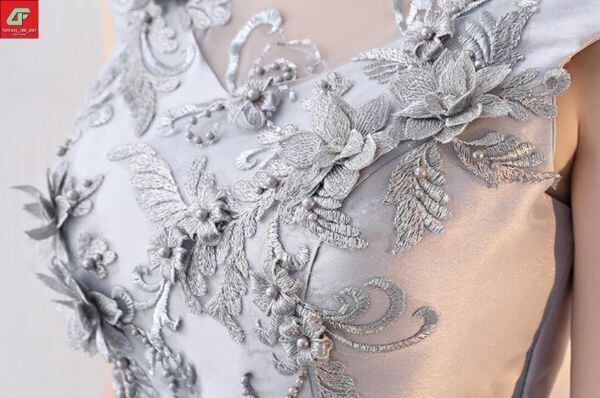 花柄立体刺繍サテンミディアムドレスです。トップス部分の立体刺繍がとても美しく豪華で大人の女性を醸し出してくれるエレガントなドレスです。デザイン性のあるスタイルがとても魅力的な一着です。全体的に優しい感じに仕上げられています。裏地有。背中網掛け。背中腰より下ファスナ-有。胸パット付き。