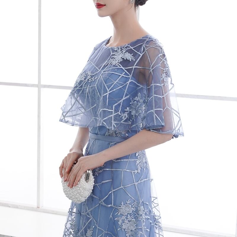 花柄立体刺繍レースパーティ-ロングドレスです。デコルテの透け感がとても美しく大人の女性を醸し出してくれるエレガントなロングドレスです。全体に立体刺繍が施されデザイン性のあるスタイルがとても魅力的な一着です。全体的に優しい感じに仕上げられています。背中ファスナ-有。胸パット付き。