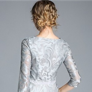 透け感が美しい総レース仕様のワンピ-スです。ウエストで切り返しが入り、裾までボタニカル柄をあしらったレース仕立ての生地をたっぷりと使用。ボリュームを出し華やかな印象に。袖は透け感があり、二の腕がほんのりと見え、品の良いセクシー感をかもしだしています。シックでやさしくエレガントな一着です。右脇ファスナーあり。裏地付き。