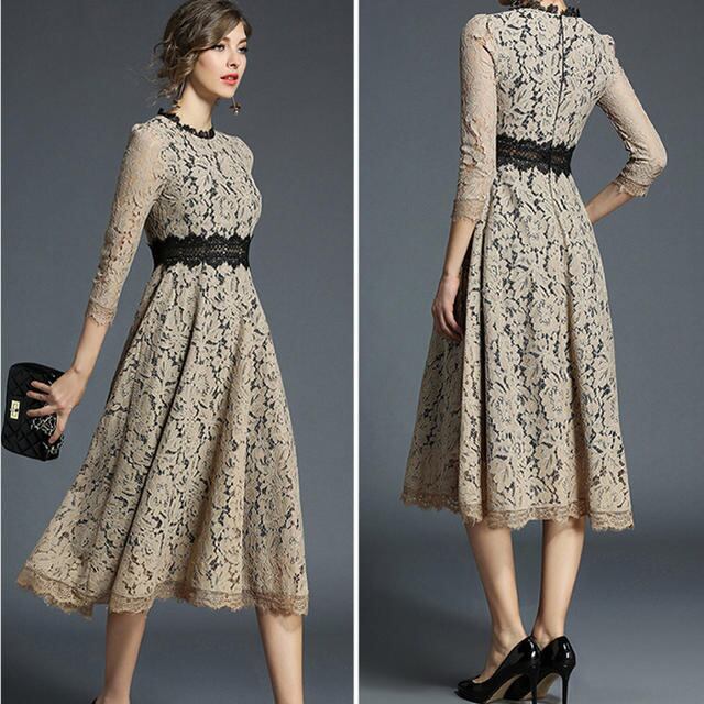 デイシ-刺繍総レ-スフェミニンなデザインのミモレ丈ワンピ-スです。ウエストにデイシ-柄刺繍がデザインされています。スリムに見えるデザインで大人の女性を醸し出してくれる一着です。裏地あり。背中ファスナ-有。