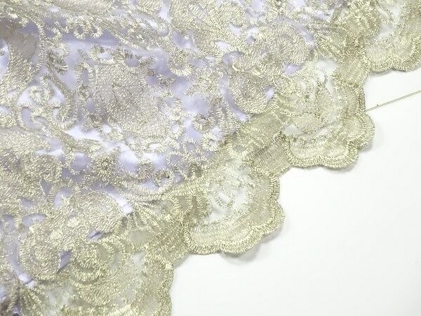 ボタニカル立体刺繍の上質ワンピースです。パープルのチュ-ル地に金糸のボタニカル立体刺繍をほどこした豪華さが演出されたデザインです。胸元の透け感がとてもエレガントかつセクシ-な一着です。左サイドファスナーあり。裏地あり。