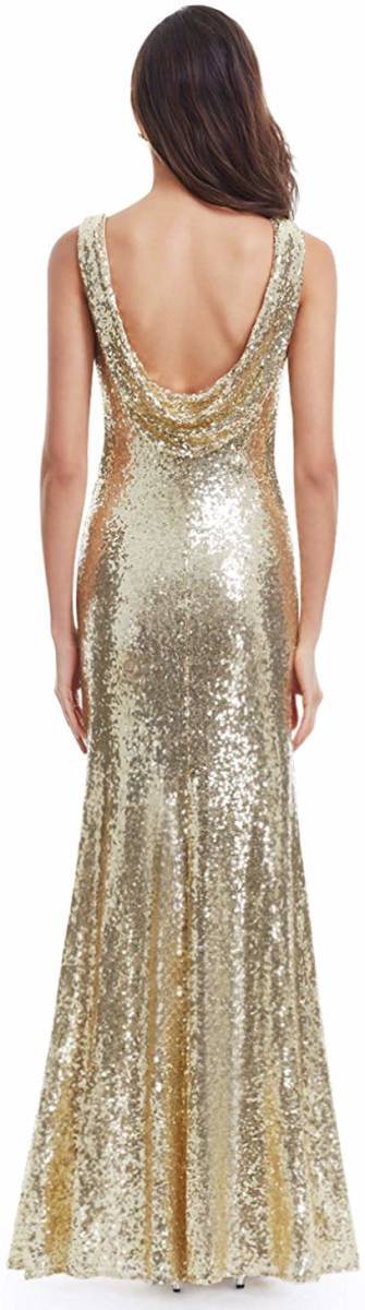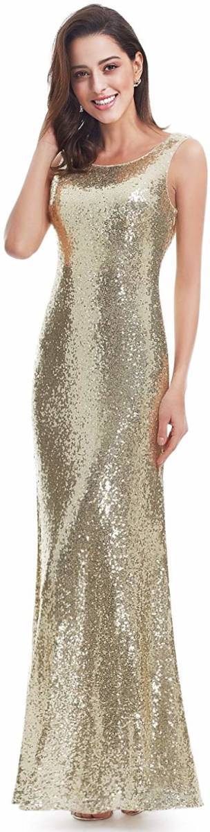 マーメイドパーティ-ロングドレスです。全体にビジュ-が施されゴ-ルドの光沢が高級感を醸しだしてくれてます。とてもエレガントです。パーティやライブ、イベント、結婚式など、どんなシーンでも活躍してくれる一着です。右サイドファスナー有。裏地有。