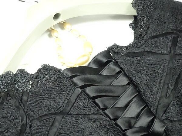 エレガントパ-ティ-ドレスです。全体の刺繍がとても素敵で気品に満ちたエレガントで上品なひとクラス上をいく一品です。背中が網掛けになっていますので結び具合でサイズ調整が多少出来ます。調整背中網掛け。背中腰から下ファスナ-有。胸パット付き。