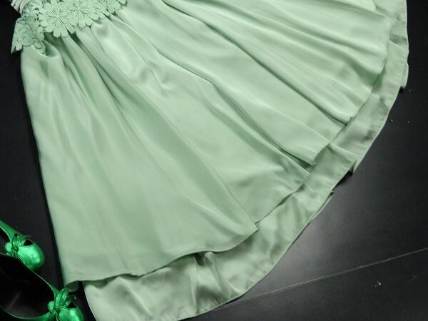 トップス部分立体花柄レース重ねサテンパ-ティ-ドレスです。トップス部分にはサテン地の上に花柄レ-スが重ねられ豪華な雰囲気に。背中が網掛けになっていてサイズ調整が出来ます。パーティやイベント、結婚式など、様々なシーンで、気品のある印象を与えてくれる一枚です。背中網掛け。左サイドファスナ-有。胸パット付。
