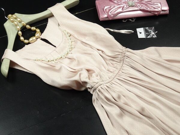 胸元飾りとフレア-が優雅なワンピ-スです。胸元の飾りが素敵で切替からのフレア-ラインが女性らしさを表現しています。結婚式、パーティ、イベント、コンサートなどどんなフォーマルなシーンでもひときわ輝きを放つことでしょう。ファスナーなし(かぶるタイプ)。裏地付。