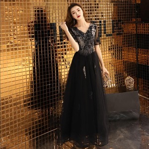 立体花刺繍ロングチュ-ルパ-ティ-ドレスです。トップス部分は立体花刺繍が施されたチュ-ルが重ねられスカ-ト部分はサテン地にチュ-ルレ-スが重ねられたっぷりの生地が使用されていますのでとても豪華でフェミニンなデザインのドレスです。パーティやイベント、コンサート、結婚式にと、さまざまシーンで活躍してくれる美しい一着。背中ファスナー有。