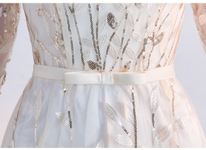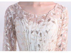 刺繍レースパーティ-ロングドレスです。袖やデコルテの透け感がとても美しく大人の女性を醸し出してくれるエレガントなロングドレスです。全体に刺繍が施されデザイン性のあるスタイルがとても魅力的な一着です。全体的に優しい感じに仕上げられています。背中ファスナ-有。胸パット付き。裏地有。