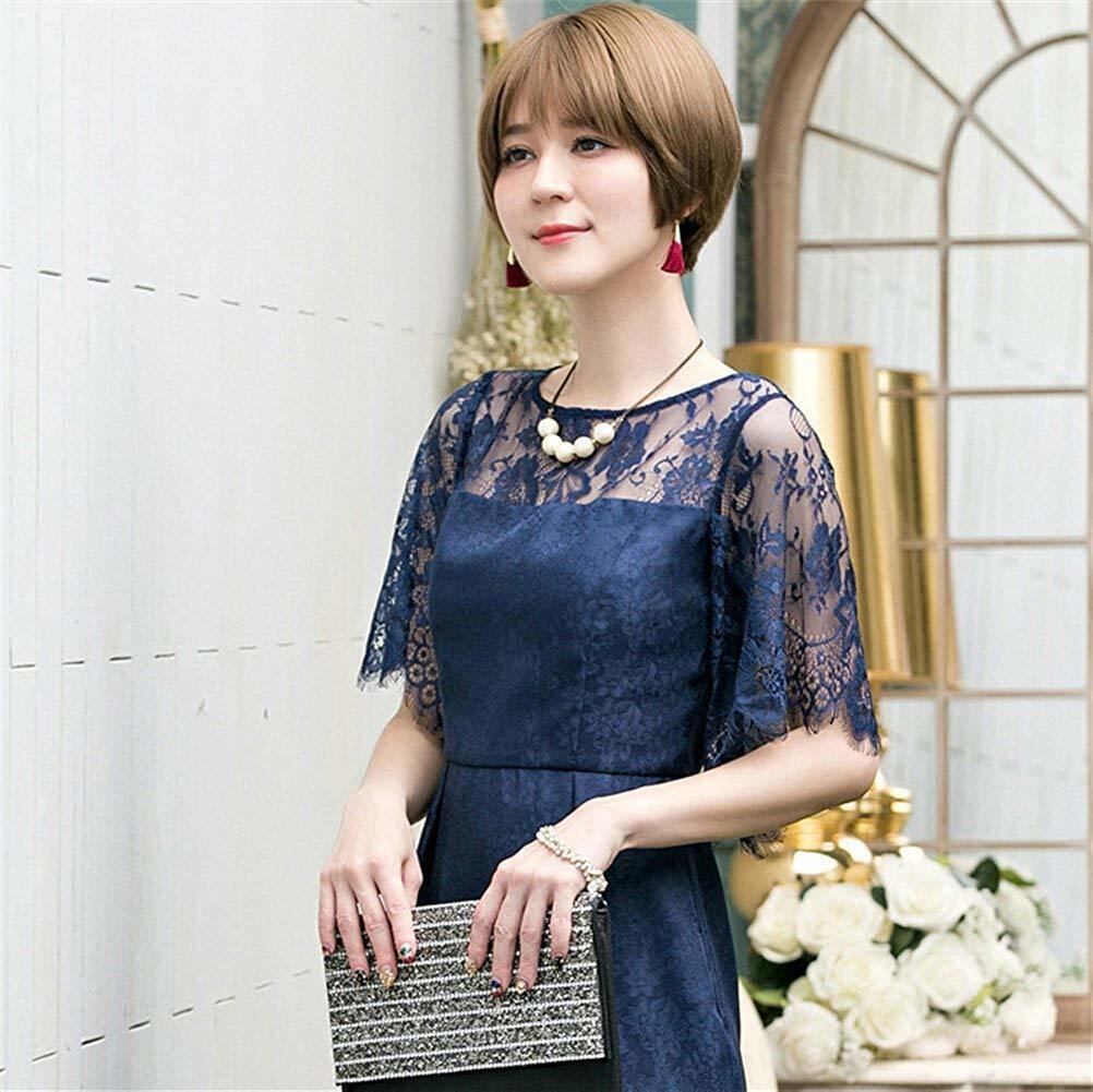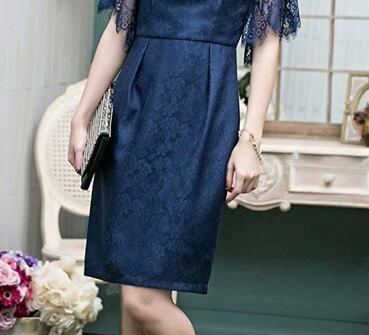 ネットチュールエレガントな膝丈のワンピ-ス。レース刺繍のようにも見える大小の花柄をあしらったネイビ-のネットチュールがエレガントで上品な印象に仕上がっています。胸元と袖はチュールをそのままあしらい、ほんのり肌の透け感が美しく、胸元から裾までの本体は、しっかりとした生地の上にネットチュールを合わせ立体的に仕上げています。ちょっとおしゃれな普段着としても、またフォーマルなシーンにも活躍してくれる、大人の女性を醸し出してくれる一着です。裏地はありませんが、本体の生地がしっかりしているので透け感はありません。背中ファスナ-有。裏地有。
