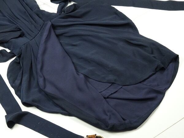 ペプラムタイプの膝丈ワンピースです。柔らかい生地でペプラムデザインを印象に仕上げられています。背中ファスナー有。裏地有り。同布ベルト付き(取り外し可)。