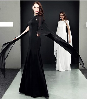 マーメイドラメ混パーティ-ロングドレスです。伸縮性があり長時間着用されても疲れないとてもエレガントな一着です。全体にラメが散りばめられてとても素敵です。パーティやライブ、イベント、結婚式など、どんなシーンでも活躍してくれる一着です。背中ファスナー有。裏地なし。