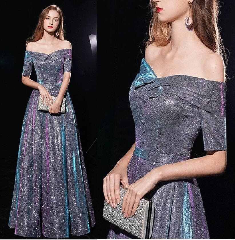 全体にラメが散りばめられたロングドレスです。光の当たり具合で輝く光沢が高級感を醸しだしてくれてます。パーティやライブ、イベント、結婚式など、どんなシーンでも活躍してくれる一着です。背中ファスナー有。
