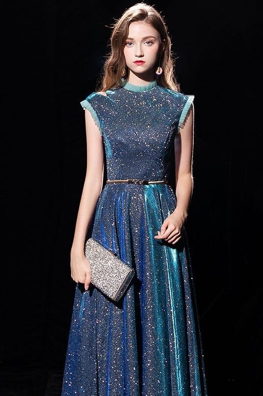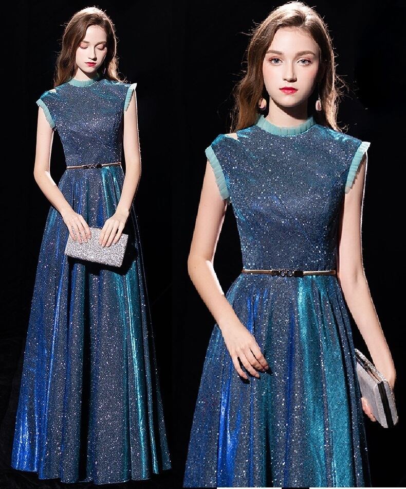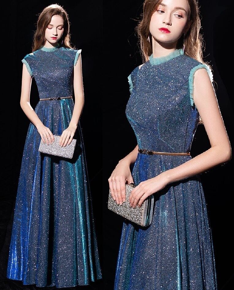 全体にラメが散りばめられたロングドレスです。光の当たり具合で輝く光沢が高級感を醸しだしてくれてます。パーティやライブ、イベント、結婚式など、どんなシーンでも活躍してくれる一着です。背中ファスナー有。ゴールドベルト付き。