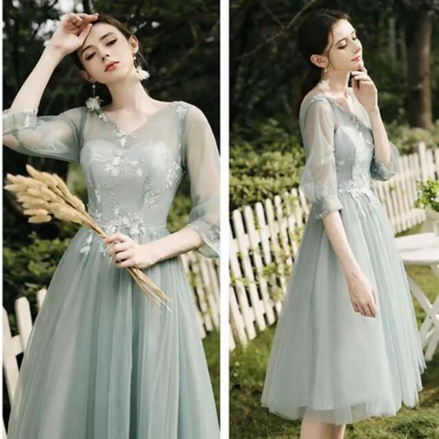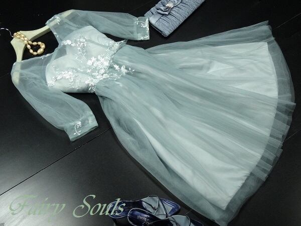 花刺繍チュ-ルミディアムパ-ティ-ドレスです。サテン地の上に、花刺繍をほどこしたチュ-ルが2重重ねられた豪華でフェミニンなデザインです。肩肩ら胸元の透け感が大人の雰囲気を醸し出し、シックで上品な女性を表現。パーティやイベント、コンサート、結婚式にと、さまざまシーンで活躍してくれる美しい一着。背中網掛け。背中腰より下ファスナー有。胸パット付。