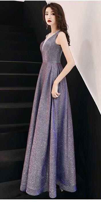 全体にラメが散りばめられたロングドレスです。光の当たり具合で輝く光沢が高級感を醸しだしてくれてます。パーティやライブ、イベント、結婚式など、どんなシーンでも活躍してくれる一着です。背中ファスナー有。