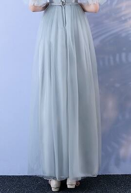 チュ-ルパーティ-ロングドレスです。袖やデコルテの透け感がとても美しく大人の女性を醸し出してくれるエレガントなロングドレスです。サテン地にチュ-ルをたっぷり重ね全体的に優しい感じに仕上げられています。背中は網掛けになっていて紐の締め具合によりサイズ的に調整できます。背中網掛け。背中腰より下ファスナ-有。胸パット付き。