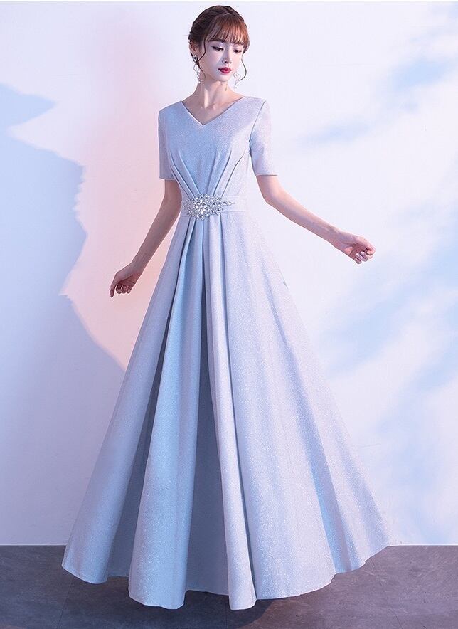 全体にラメが散りばめられたパーティ-ロングドレスです。光の当たり具合で輝く光沢が高級感を醸しだしてくれてます。ウエストの飾りも綺麗です。背中が網掛けになっていて紐の結び具合でサイズ的に多少調整できます。パーティやライブ、イベント、結婚式など、どんなシーンでも活躍してくれる一着です。背中網掛け。
