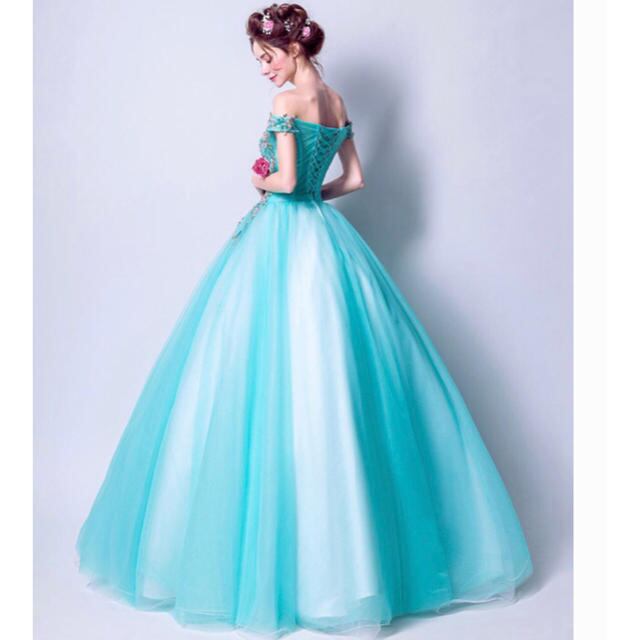 ビジューと刺繍のオフショルダードレス。トップス部分はデコルテラインを美しく魅せるオフショルダー。胸元は少しV字にカットして清楚な中にもプチセクシーな印象をプラス。胸元からウエスト下にかけての刺繍とビジュー飾りが豪華かつエレガントな雰囲気を醸し出しています。ウエディングドレスとしても、また、パーティやイベント、結婚式など、様々なシーンで、気品のある印象を与えてくれる一枚です。裏地付き。背中腰から下ファスナ-有。(背中編上げで結び紐有り)。胸パット付。