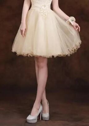 立体刺繍チュールパ-ティ-膝丈ドレスです。トップスにクリ-ム糸の立体刺繍が施されたレースが重ねられとても豪華です。全体的にサテン地の上に無地のチュールをたっぷりと3重重ね豪華な雰囲気に。パーティやイベント、結婚式など、様々なシーンで、気品のある印象を与えてくれる一枚です。背中網掛け。背中腰から下ファスナ-有。胸パット付。