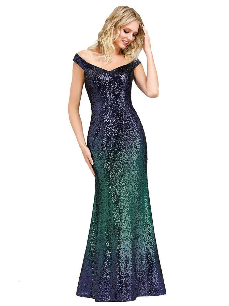マーメイドパーティ-ロングドレスです。全体にビジュ-が施されネイビ-とグリ-ンの光沢が高級感を醸しだしてくれてます。とてもエレガントです。パーティやライブ、イベント、結婚式など、どんなシーンでも活躍してくれる一着です。背中ファスナー有。裏地有。胸パット付き。