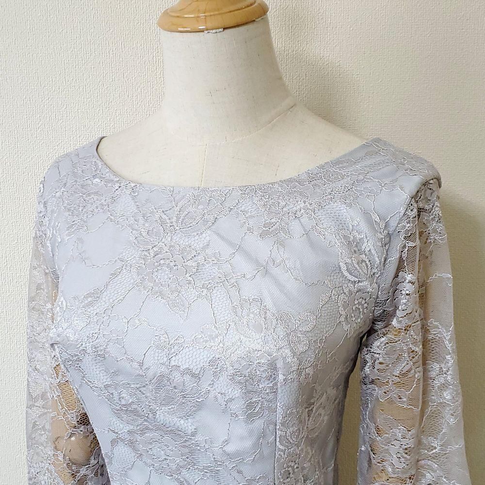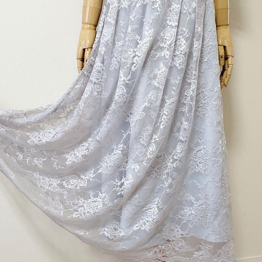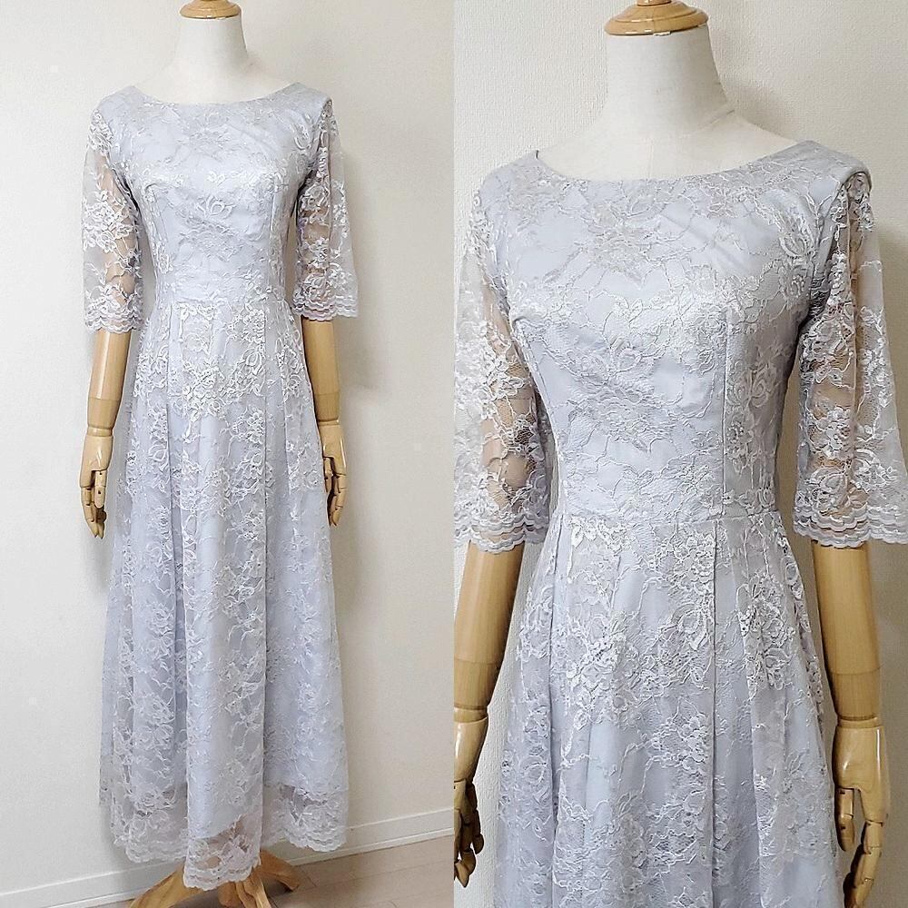 総レースロングワンピ-スです。落ち着いたグレーのレースが品良くエレガントさが際立ちとても美しく高級感を醸しだしてくれます。ちょっとおしゃれな普段着として、またフォーマルなシーンでも活躍してくれる一着です。背中ファスナー有。
