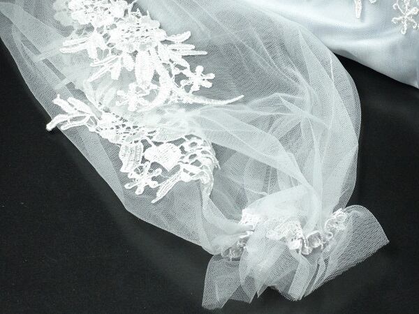 トップス部分立体花柄刺繍チュールパ-ティ-ロングドレスです。トップスに白糸の立体刺繍が施されたレースが重ねられとても豪華です。全体的にサテン地の上に無地のチュールをたっぷりと重ね豪華な雰囲気に。パーティやイベント、結婚式など、様々なシーンで、気品のある印象を与えてくれる一枚です。背中網掛け。背中腰から下ファスナ-有。胸パット付。