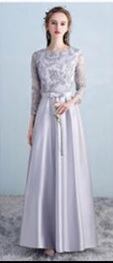 レース切替サテンロングドレスです。気品に満ちたとてもエレガントで上品なひとクラス上をいく一品です。トップス部分は立体刺繍が施されたレースがサテン地に重ねられ豪華かつ上品でエレガントなドレスです。背中網掛け。背中腰から下ファスナ-有。裏地有。胸パット付き。