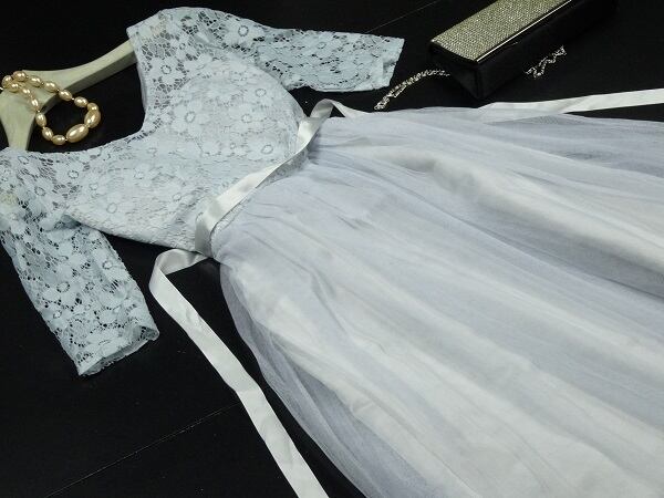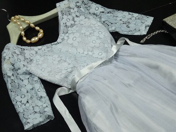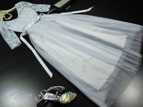トップス部分花柄刺繍チュールパ-ティ-ロングドレスです。トップスにグレ-糸の刺繍が施されたレースが重ねられとても豪華です。全体的にサテン地の上に無地のチュールをたっぷりと重ね豪華な雰囲気に。パーティやイベント、結婚式など、様々なシーンで、気品のある印象を与えてくれる一枚です。右サイドファスナ-有。胸パット付。