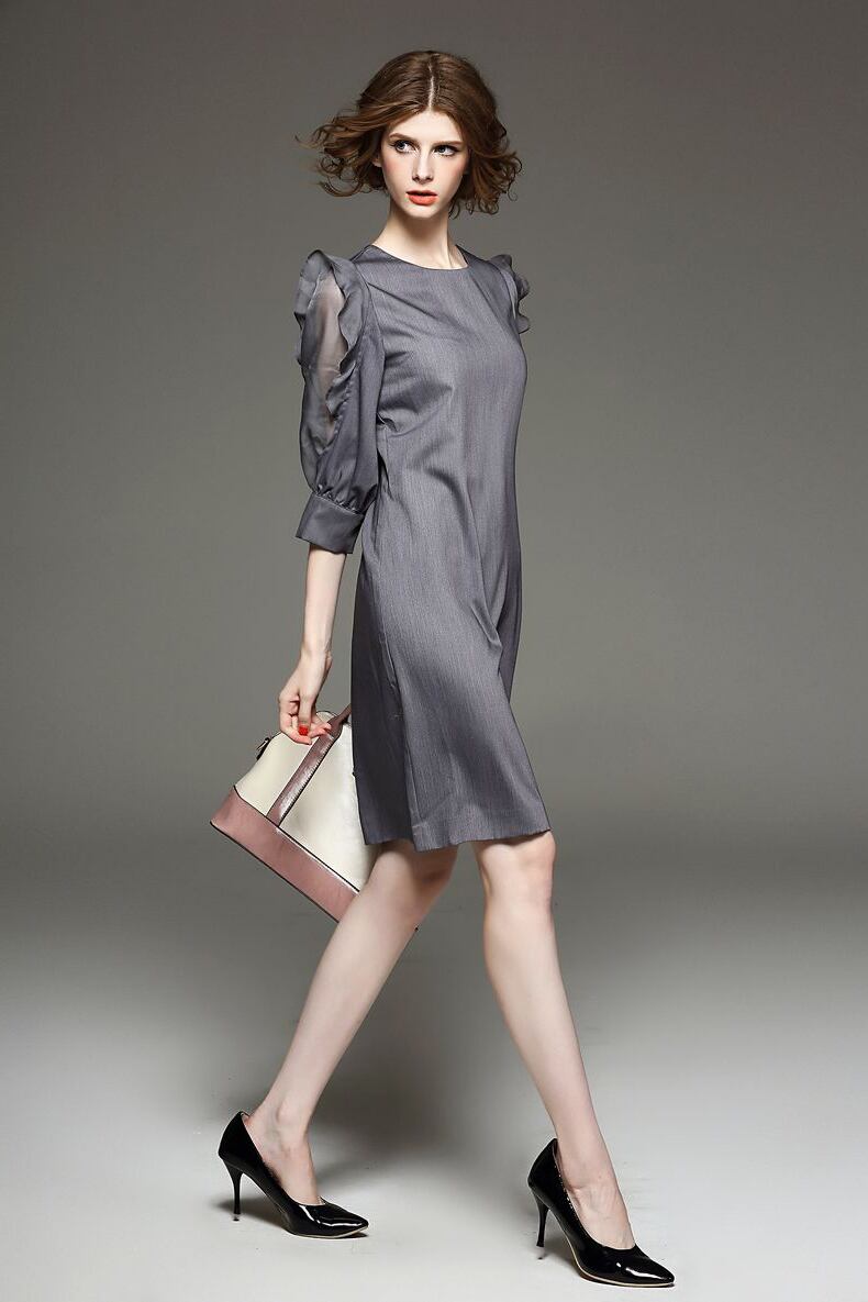 シックなシースル-フォ-マルワンピースです。落ち着いたグレーで腕部分がシ-スル-になっているエレガントなデザインです。結婚式や謝恩会などに。背中ファスナー有。裏地なし。