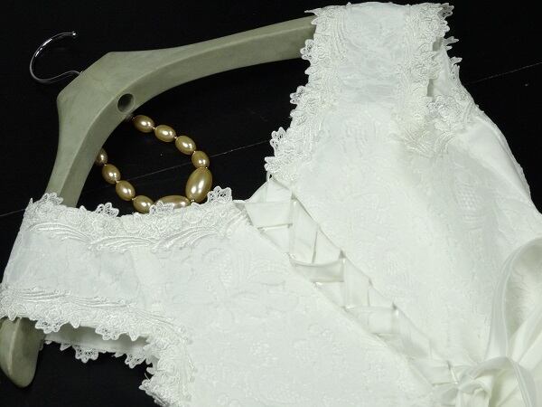立体刺繍チュールパ-ティ-ドレス。トップスにホワイトの立体刺繍が施し、ウエストにサテンのリボンをアクセントにあしらい、スカート部分はサテン地の裏地の上にチュールをたっぷりと重ねた豪華なデザイン。パーティやイベント、結婚式など、様々なシーンで、気品のある印象を与えてくれる一枚です。背中は編み紐リボンでサイズ調整が可能です。裏地有。背中編み紐の下(腰から下)ファスナ-有。胸パット付。