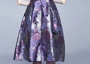 花柄ジャガ-ド織ミディアムドレスです。ジャガ-ド織花柄刺繍がとても上品かつ豪華で飽きのこない着まわせる一着です。紫と赤紫とシルバ-のコントラストがとても綺麗で大人の女性度をUPしてくれてます。裏地有。背中ファスナ-有。