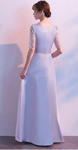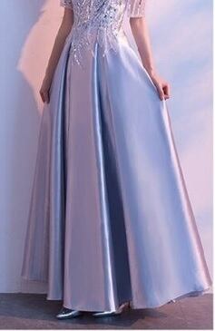 レース切替サテンロングドレスです。気品に満ちたとてもエレガントで上品なひとクラス上をいく一品です。トップス部分はビジュ-飾りが施されたレースがサテン地に重ねられ豪華かつ上品でエレガントなドレスです。背中ファスナ-有。裏地有。胸パット付き。