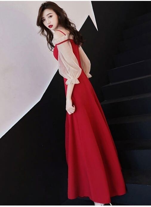 胸元フリルパ-ティ-ロングドレスです。伸縮性のある素材でとても着やすくこの一枚でとてもエレガントになります!!胸元はフリルになっていて腕部分はシ-スル-のエレガントな一着です。 背中ファスナ-有。裏地なし。