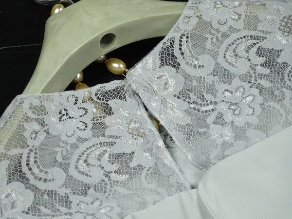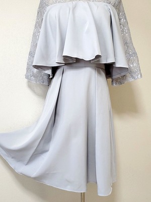 レースと胸ドレープ仕様のワンピース。胸元と袖は透け感が美しいレース仕様。胸元からウエストにかけてたっぷりと生地を使用したツーピース風のドレープ仕様になっています。スカート部分はウエスト部分からゆったりとした箱プリーツに。背中側は、フック留めの下から少し開いてファスナーが付いています。ユニークでフェミニンなデザインが、シックで上品な女性を表現。パーティやイベント、コンサート、結婚式にと、さまざまシーンで活躍してくれる美しい一着。胸パッド付。背中ファスナー。裏地付。