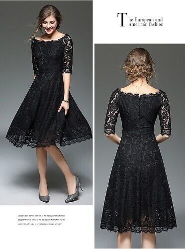 総レース膝丈ワンピ-スです。レースのエレガントさが際立ちとても美しく高級感を醸しだしてくれます。裏地有。背中ファスナ-有。