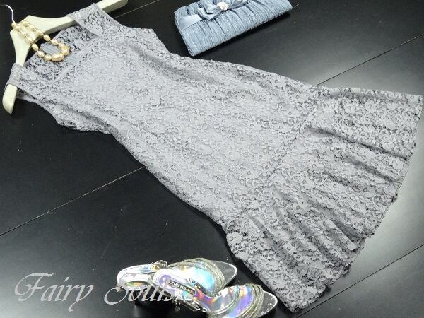 シックなグレ-の花柄レースが美しいワンピース。ネット地の上にグレ-のレースをあしらい、透明感のある美しいデザインです。デートやちょっとした御呼ばれなど、フォーマルなシーンにも活躍してくれる一着です。背中ファスナー。裏地有。