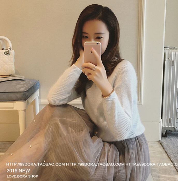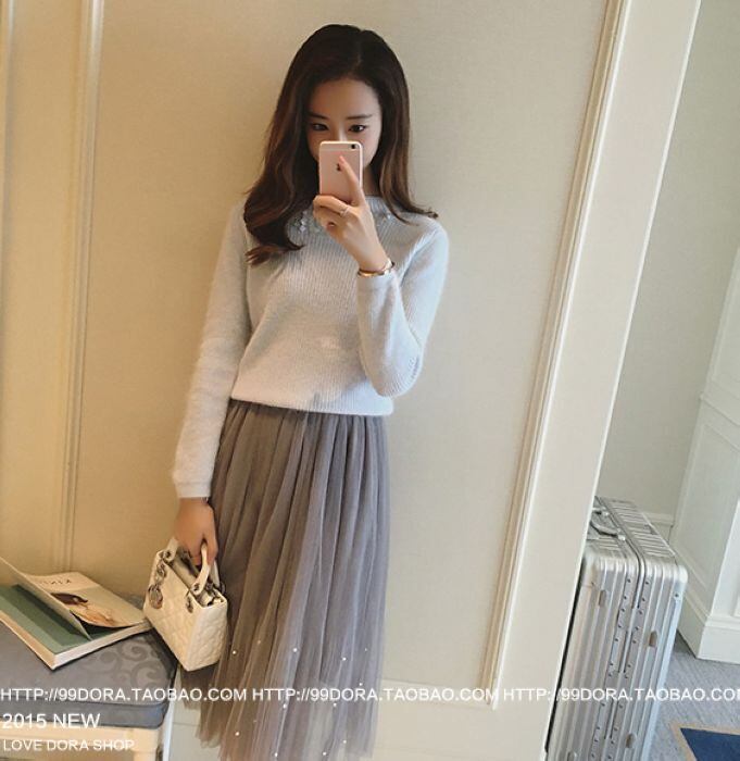 シンプルなふんわりチュ-ルのロングスカ-トです。パール飾りがとても可愛いです。ファスナ-なし。裏地付。