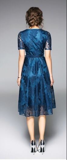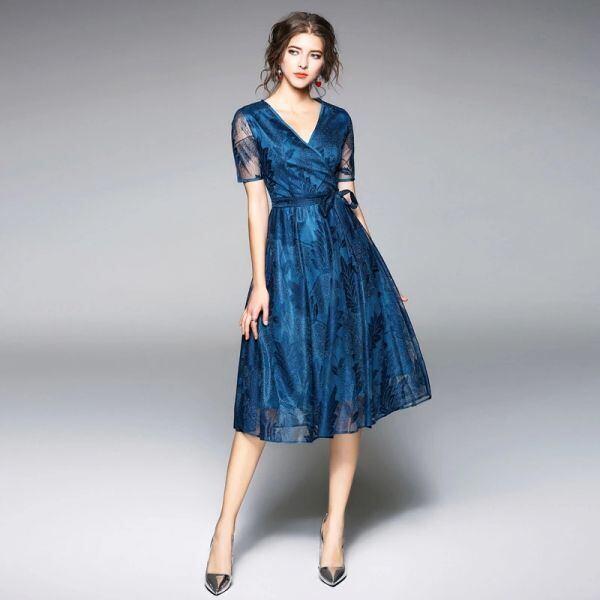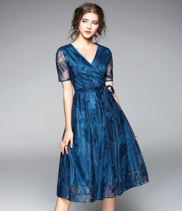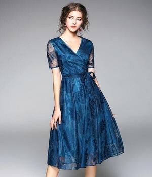 透け感が美しいレース仕様ワンピ-スです。全体にボタニカル柄をあしらったレース仕立ての生地をたっぷりと使用。ボリュームを出し華やかな印象に。袖は透け感があり、二の腕がほんのりと見え、品の良いセクシー感をかもしだしています。シックでやさしくエレガントな一着です。右脇ファスナーあり。裏地付き。同布ベルト付き。