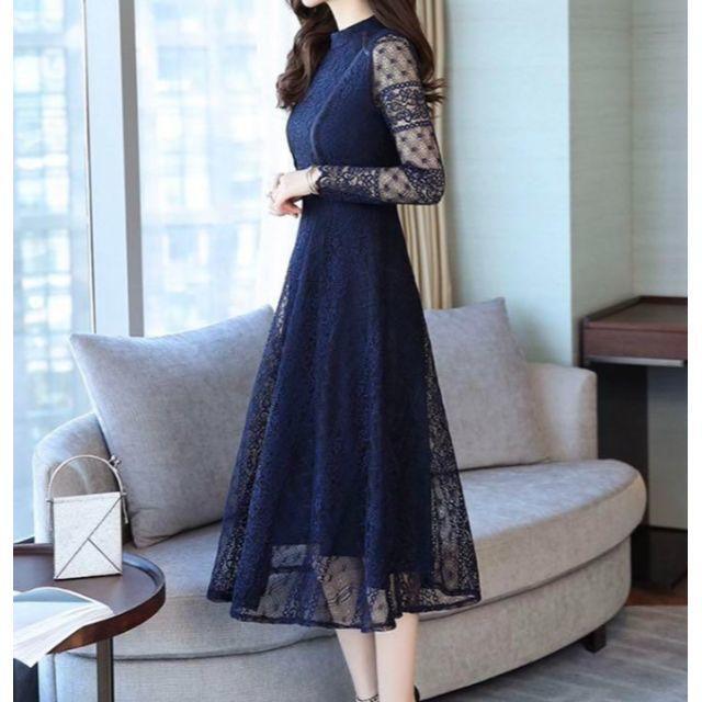 総レ-スミモレ丈フレア-ワンピ-スです。全体の総レ-スがとても豪華なデザインで大人の女性を醸し出してくれる一着です。裏地あり。背中ファスナ-有。