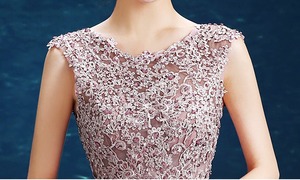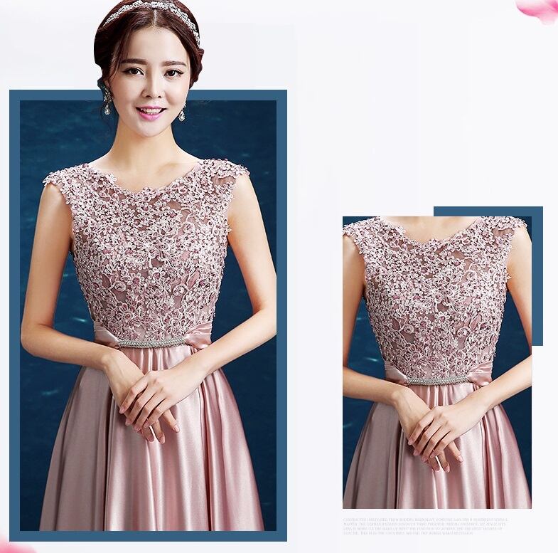 レース切替バックリボンサテンロングドレスです。気品に満ちたとてもエレガントで上品なひとクラス上をいく一品です。トップス部分は花刺繍が施されたレースがサテン地に重ねられ豪華かつ上品でエレガントなドレスです。背中ファスナ-有。胸カップ付き。裏地有。