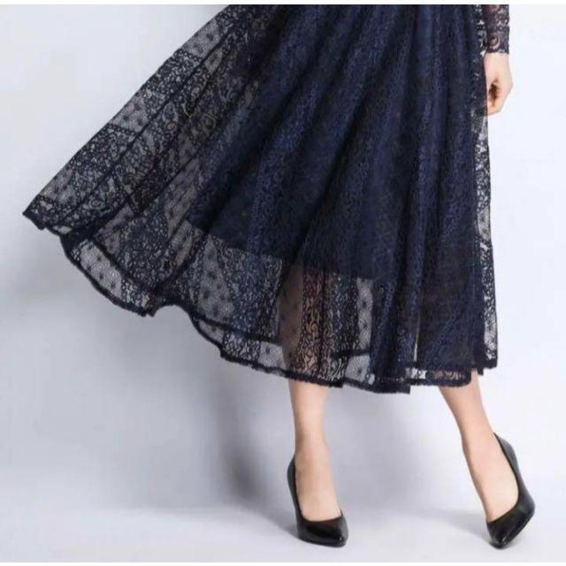 総レ-スミモレ丈フレア-ワンピ-スです。全体の総レ-スがとても豪華なデザインで大人の女性を醸し出してくれる一着です。裏地あり。背中ファスナ-有。